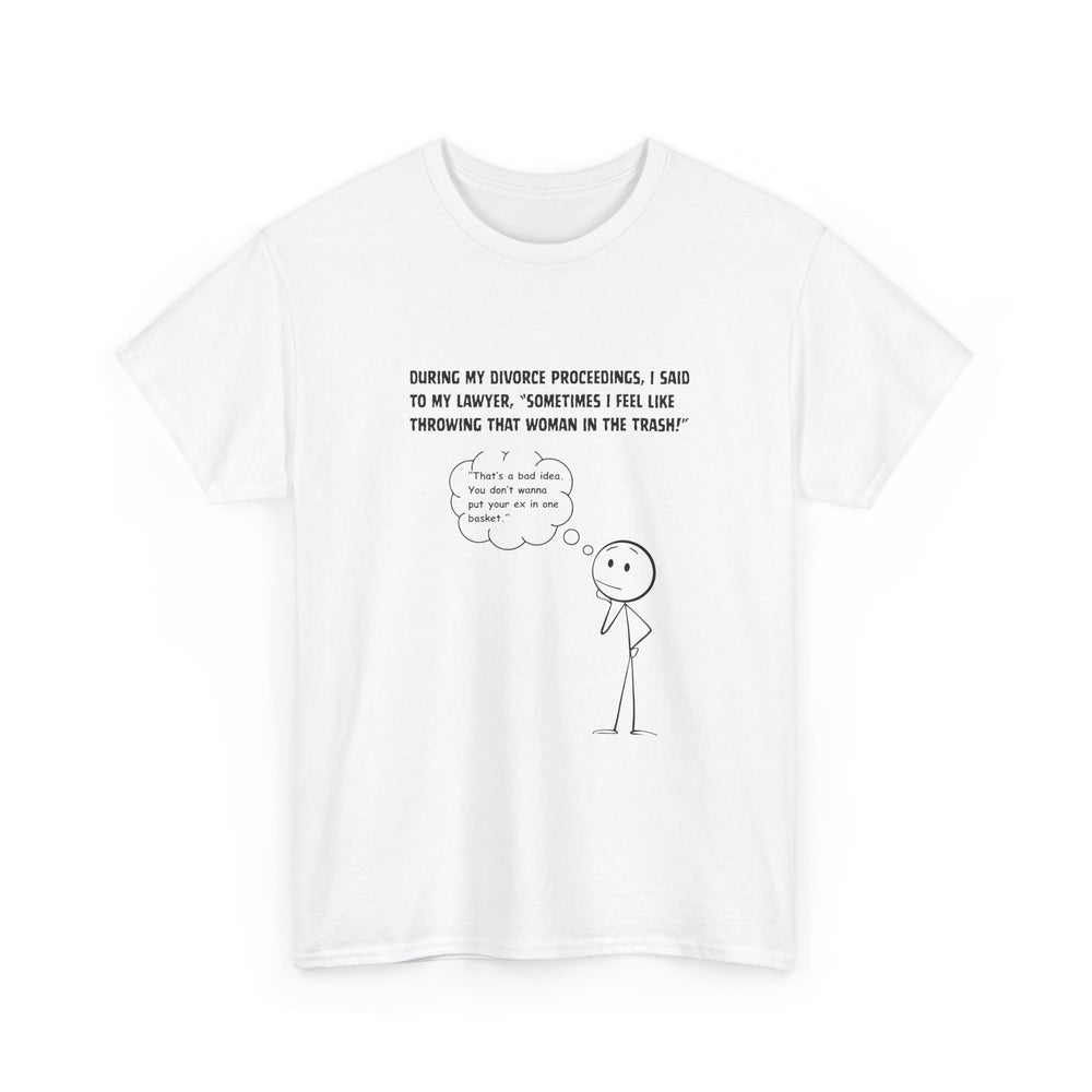 This soft, classic-fit tee carries a tiny, deadpan stick-figure comic that lands with dry humor. It’s lightweight but sturdy, the kind of shirt you reach for when you want to wear a subtle joke rather than shout it. The simple white canvas keeps attention on the minimalist illustration and caption — an amusing, slightly absurd line that sparks a knowing smile. Wear it to coffee shops, low-key hangouts, or lazy weekends at home when you want comfort and a little cleverness in your outfit. The neutral color and clean crew neckline make it easy to layer under a jacket or pair with lived-in jeans for an everyday look that reads relaxed and witty.